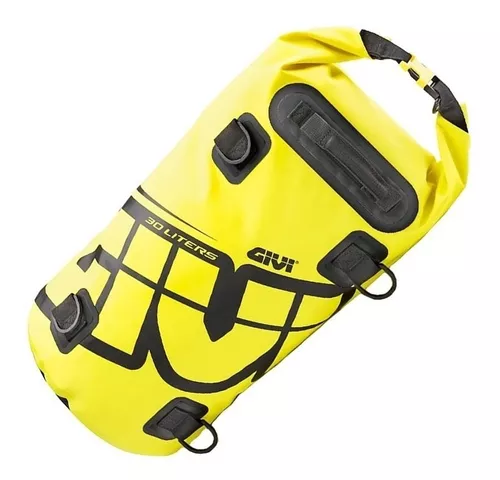 GIVI EA114FL Waterproof cylinder bag for the saddle or luggage rack, 30 ltr, Fluroscent yellow. As standard: • Roll down closure system to ensure fully waterproof functionality • Carrying strap • Shoulder strap for transportation • 2 Elastic straps for universal mounting
